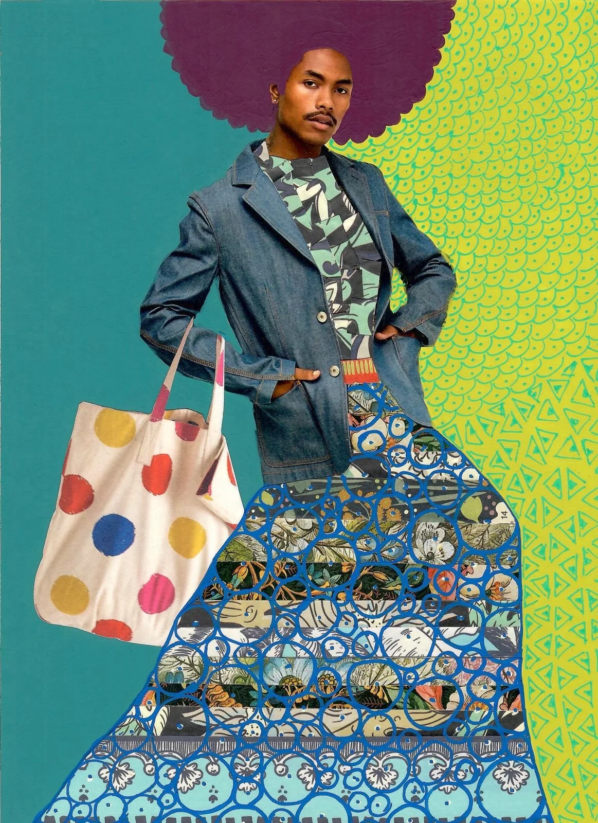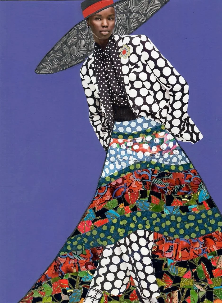 My imagination runs full speed looking at fashion magazines searching for uniqueness, color and patterns, but only seeing outfits without personality. Nothing speaks to me, so I re-fashion the fashion magazines one page at a time.